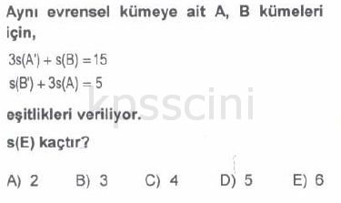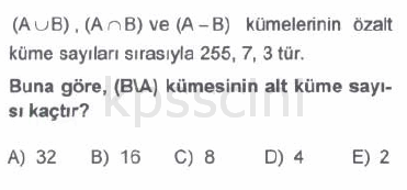 KPSS Matematik Kümeler Testi Çöz