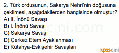 Cevap yanlış, ordunun doğuya çekilmesi eskişehir-kütahya muhareblerinde gerçekleşmitir.