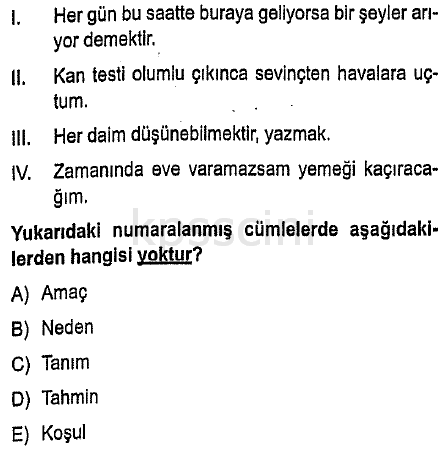 KPSS Türkçe Cümlenin Anlamı ve Yorumu Testi Çöz 5