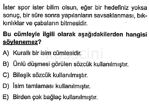 KPSS Türkçe Temel Dil Bilgisi Testi Çöz 5